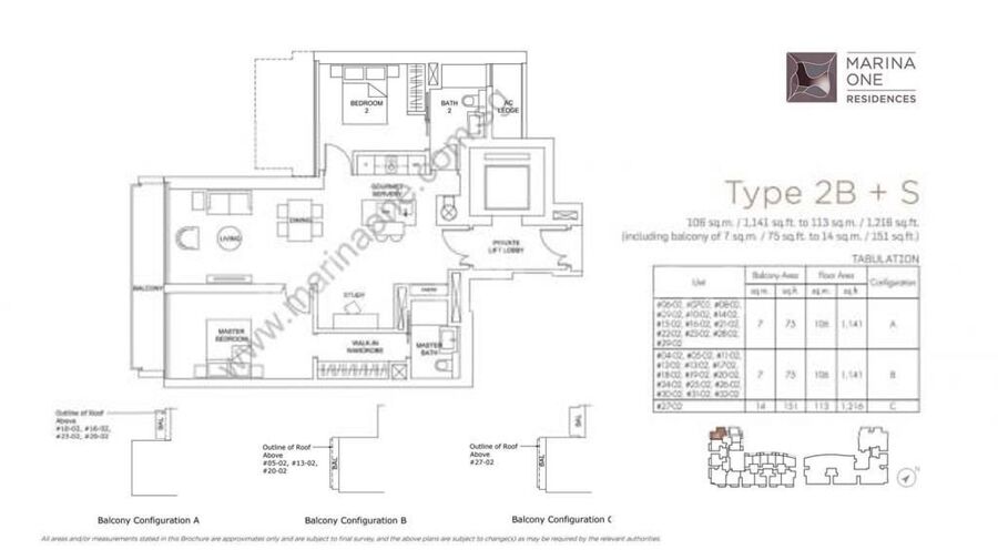 2BR + Study 106 113sqm (1141 1216sqft)