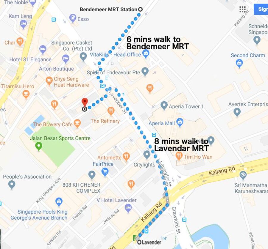 5 Mins walk to Lavender MRT Station (East-West Green Line)