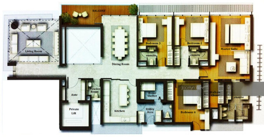 Rooms : 4 bedrms + 1 Household Shelter