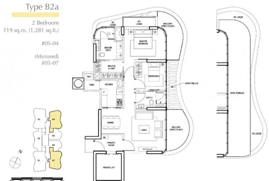 single floor 2 bedrooms with generous balcony