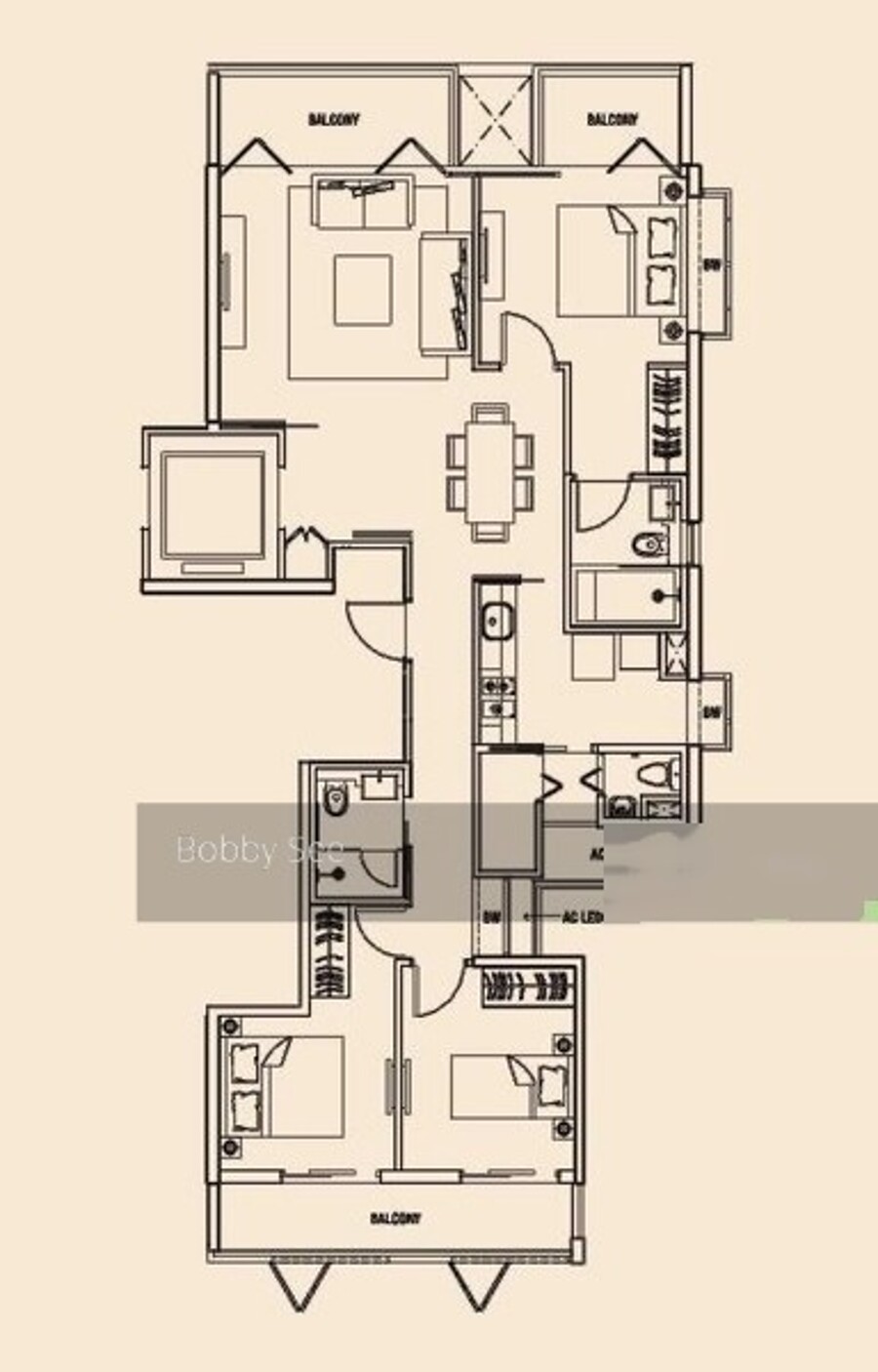 3 bedrooms in Shelford Suites - unique corner in the good quality development built by CDL with quality furnishings and fixtures