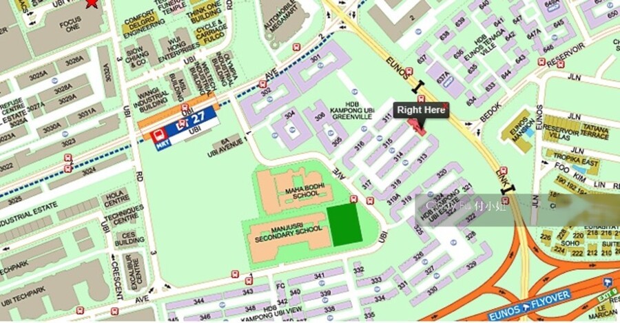 The nearest MRT/LRT station for Blk 312, Ubi Avenue 1 is EW7 Eunos which is about1.1km away . There is also an upcoming MRT DT27 ubi 0.51km away. There are 16 bus stops near Blk 312, Ubi Avenue 1.