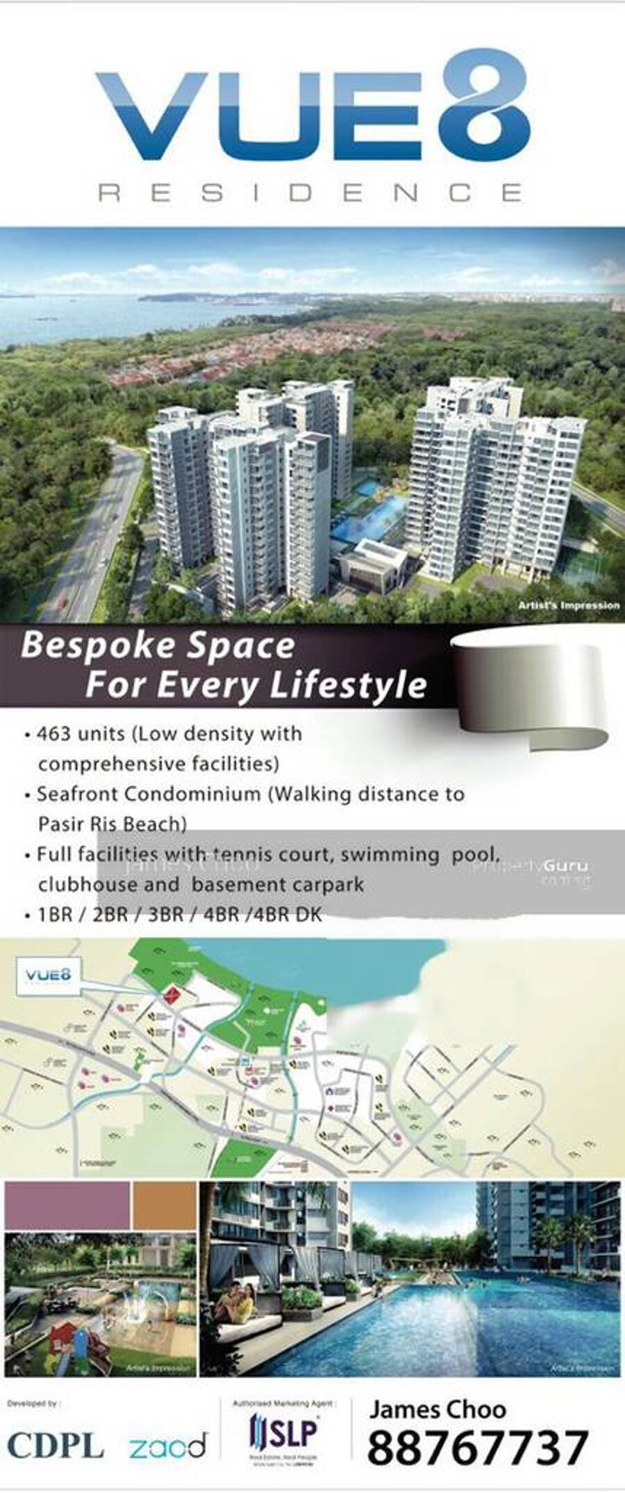 Newly TOP Penthouse for Sale. Pool and Sea view. Walk to Pasir Ris Beach and minutes to Changi Intl Airport. Free shuttle bus service to shopping mall and MRT.Don’t miss this PH that is below $3 million. For viewing, call James at *****.
