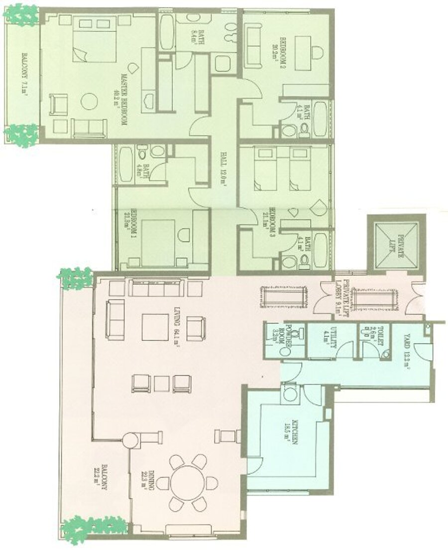 4 bedrooms with all.attached baths