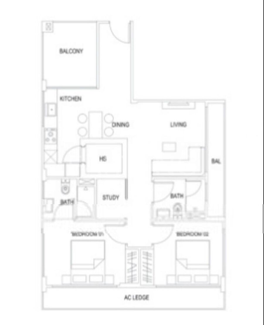 2 BEDRMS + 1 smaller STUDY RM