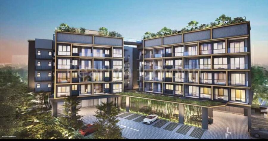 Low rise project of 2 blocks of 5 storey residential flats with surface car park, swimming pool and communal facilities at the roof terrace. Total 48 units.