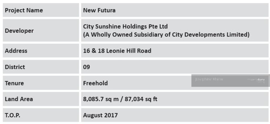 New Futura is a freehold condo located at Leonie Hill Road in District 09. It’s walking distance to Somerset MRT, Orchard MRT and upcoming Great World MRT due completion in year 2021.