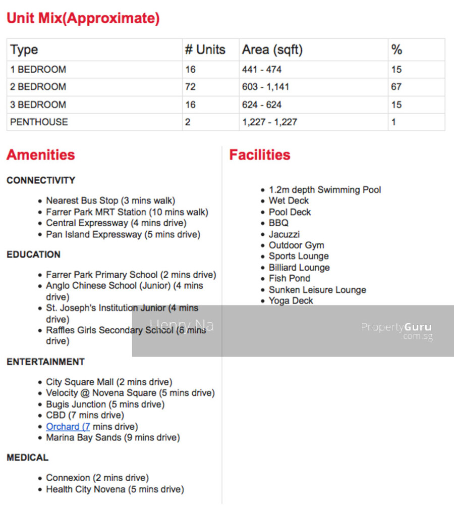 * Nearby shopping malls – City Square Mall, Velocity @ Novena Square, United Square, Bugis Junction, Suntec City