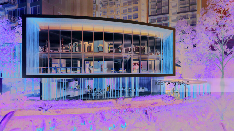 The architectural language is kept to pure forms, bridging between the landscape and the urban. The box and frame design language takes a humbler approach to complement the landscape, allowing the development to grow into a living forest. The riparian nature of the development immediately stands out among the urban neighborhood, recreating the experience of a sanctuary landscape in the heart of the Serangoon estate.