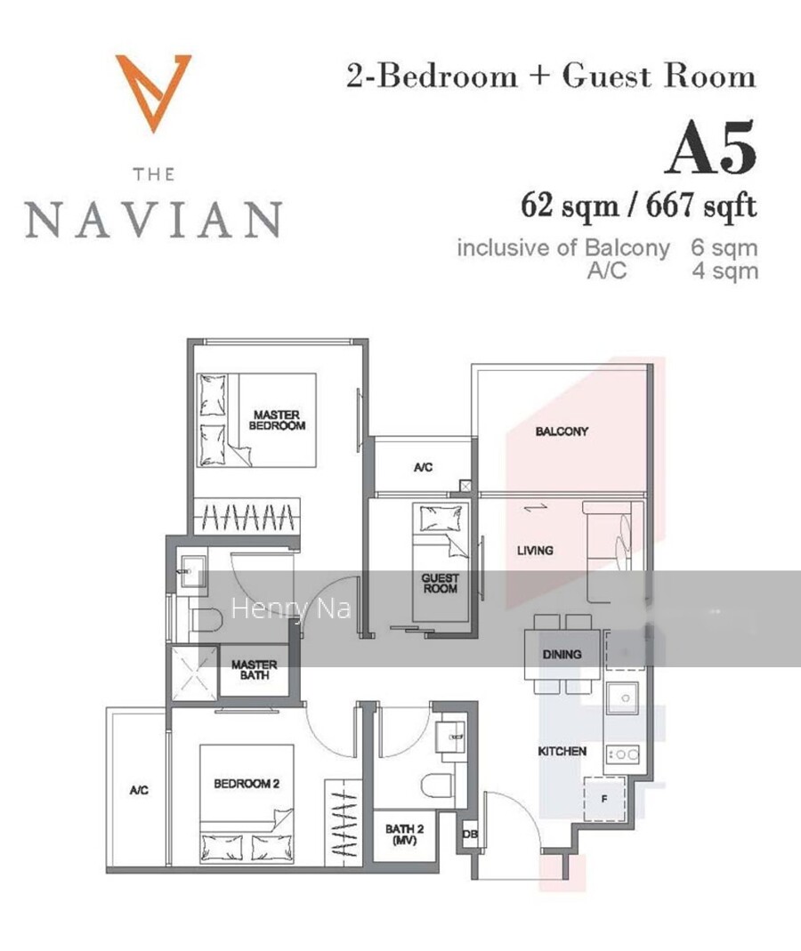 2 bedroom plus guest room, 667 sqft