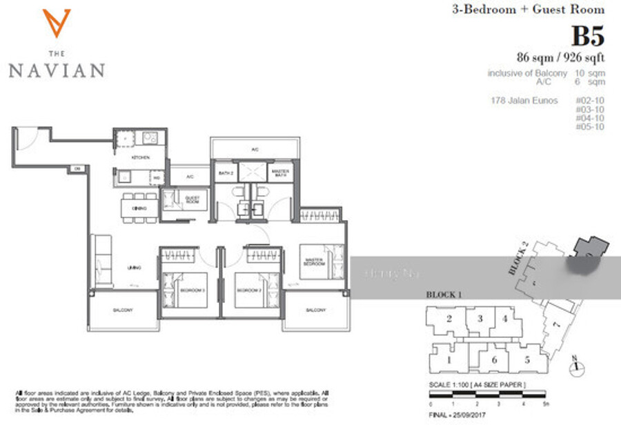 3 bedroom plus guest room, 893 - 926 sqft