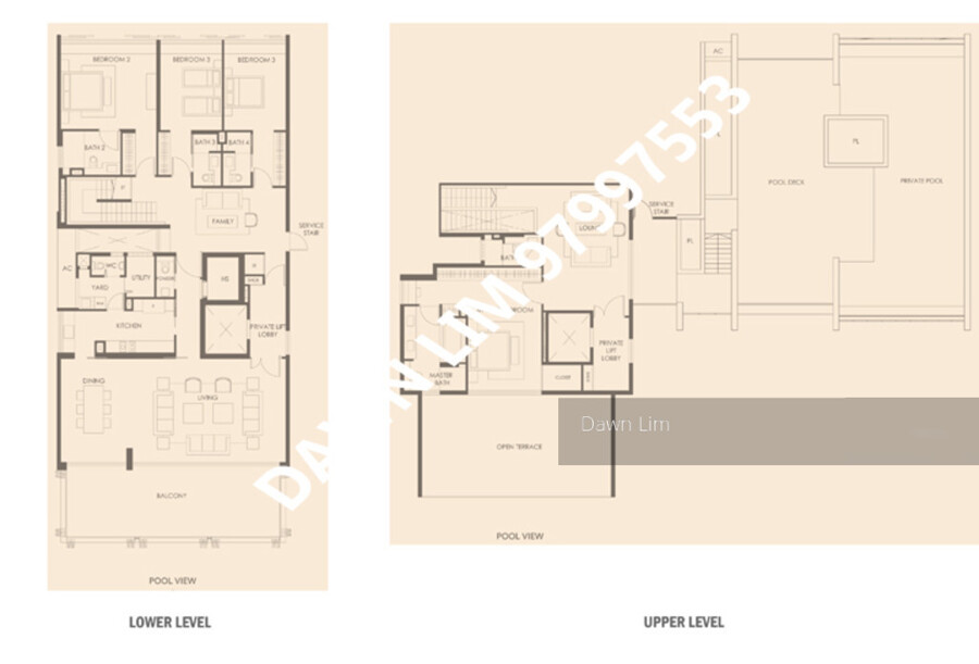 Feature 4 en-suite bedrooms with the Master bedroom suite on the upper level of the apartment.