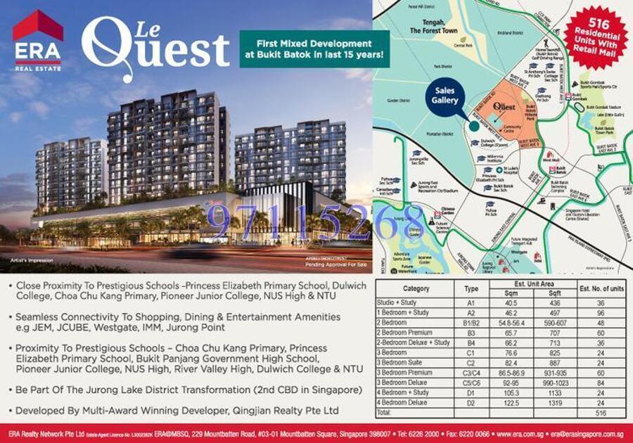 * There will be a 2 years Free Shuttle Bus Service from #Le Quest to Bukit Batok and Jurong East Mrt