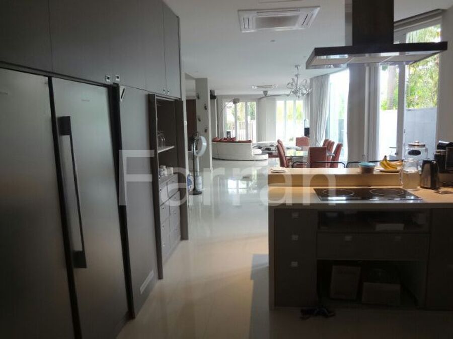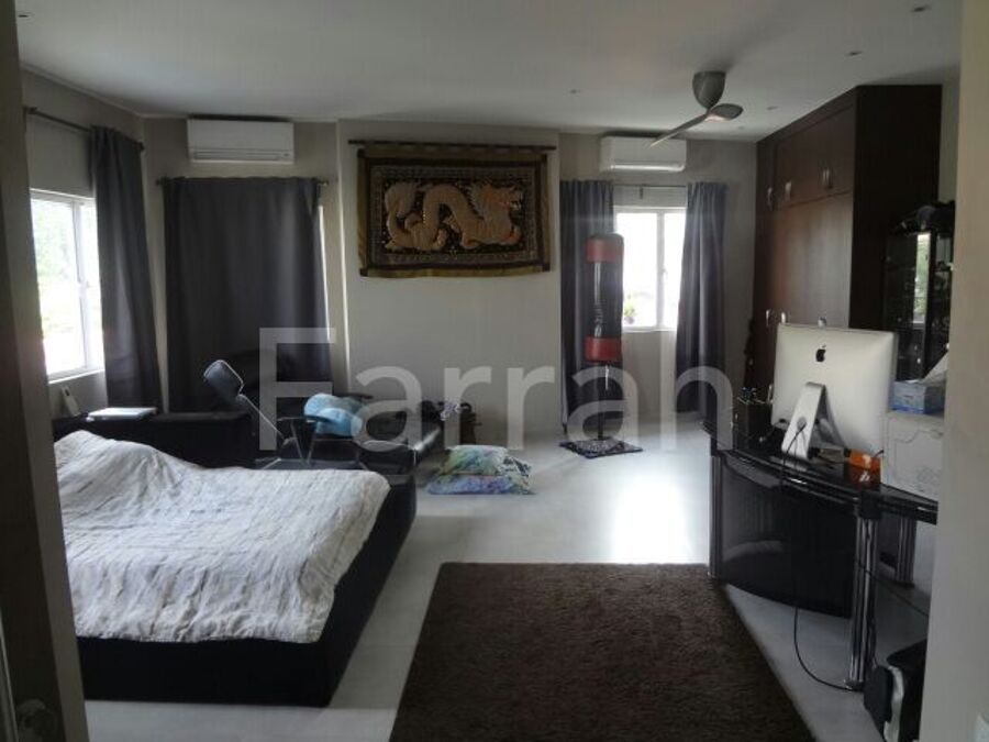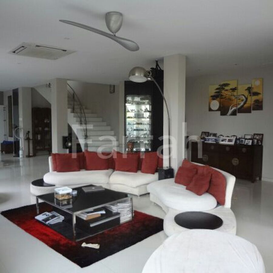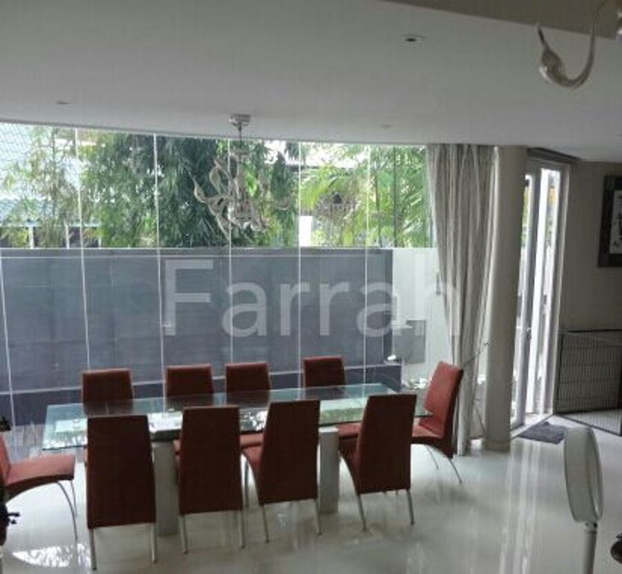 Freehold Semi-Detached 3.5 stories Mariam Close house in a Cul-de-sac. Extensively renovated. 4900s.ft built in & 2946sq ft land. 4 ensuite bedrooms +1 non-ensuite bedroom/study + maid's quarters . Main living rm + 2 family living areas. 3 floors + a rooftop terrace/lounge/bar. Totally reno - modern Western kitchen + outdoor Asian kitchen. 2 storerooms. Outdoor Water feature. Fully air-con. Covered car porch & an auto gate. Impressive Front door. Balconies from bedrooms. Home theatre system in living room. Easy access to TPE/PIE/ECP Changi A'port. Upper Changi MRT is 2 bus-stops away. The bus-stop is a 3-minute walk from the house. Eateries nearby. The vicinity is surrounded by lush greenery. Japanese School is in the area. So is the Salvation Army HQ.