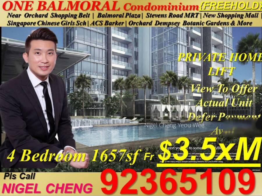 d09 d10 freehold residential one balmoral opp new shopping mall (* Former Pinetree clubhouse ) luxurious condominium 4 bedroom 1658sf with private lift dev sale fr $3.6xmil