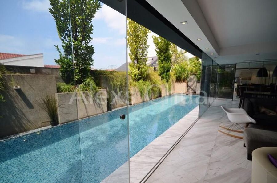 Modern 2 storey detached bungalow with 14 metres lap pool perched on a quiet hilltop @ Serangoon Garden.