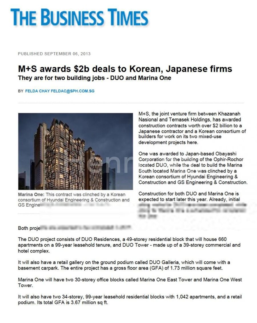 • Connectivity – islandwide via MRT and expressways. DUO is served by Bugis MRT station (via direct underground pedestrian link ways). Existing East-West and future Downtown line (Stage 1 estimated completion end 2013). Proposed future underground links to Gateway and Suntec City