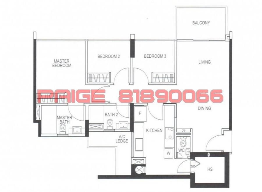 3 bedroom facing swimming pool.