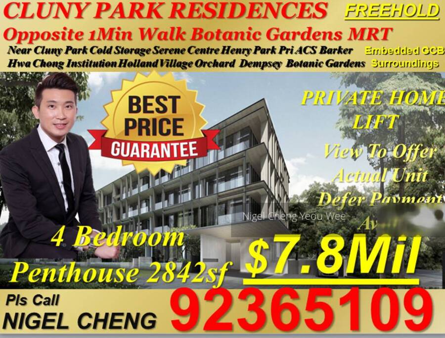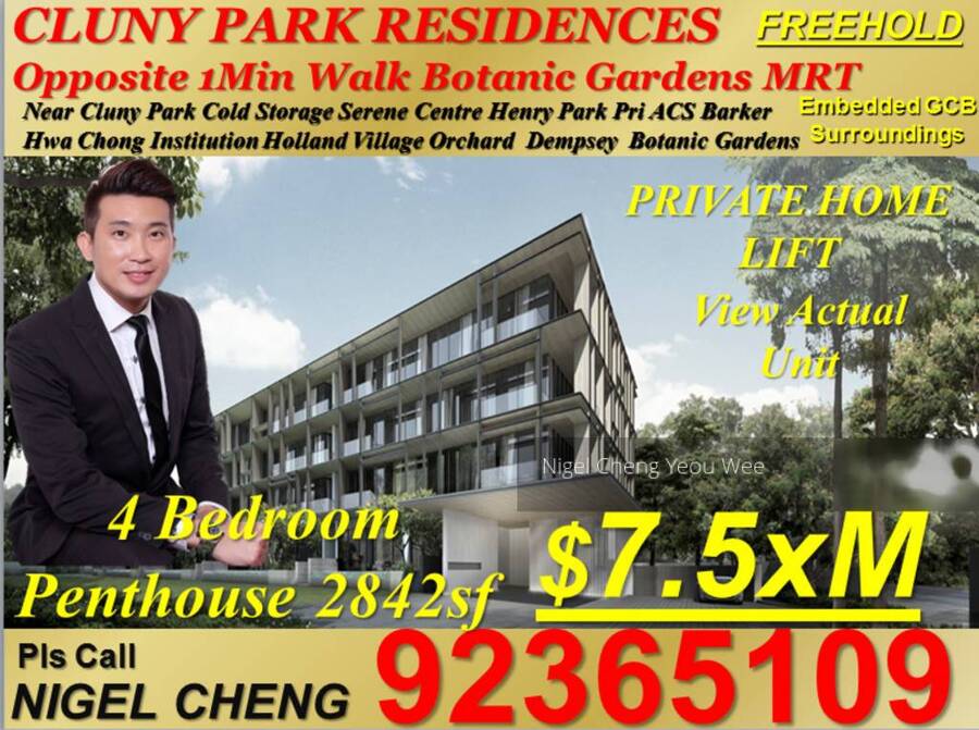 d10 bukit timah botanic gardens mrt opposite cluny park residence freehold luxurious classy state of the art condominium 4 bedroom penthouse with large spacious living room, private family area & maidsroom 2842sf Fr $7.8mil