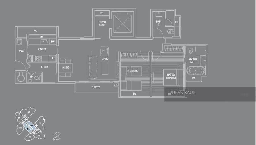 Yes, a Beautiful 2 Bedroom + Utility Room on a high floor with your own private lift.