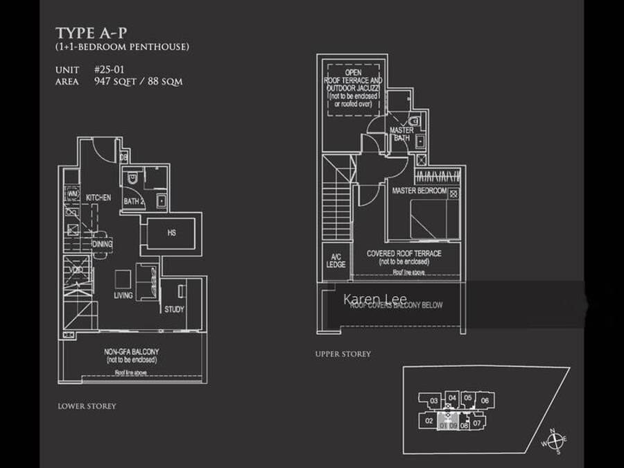 - 1 bedroom + study (926/936/947/1119 sqft)