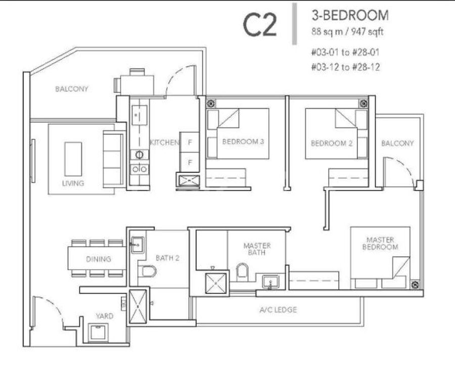 3 Bedroom (965sf) fr $965,000