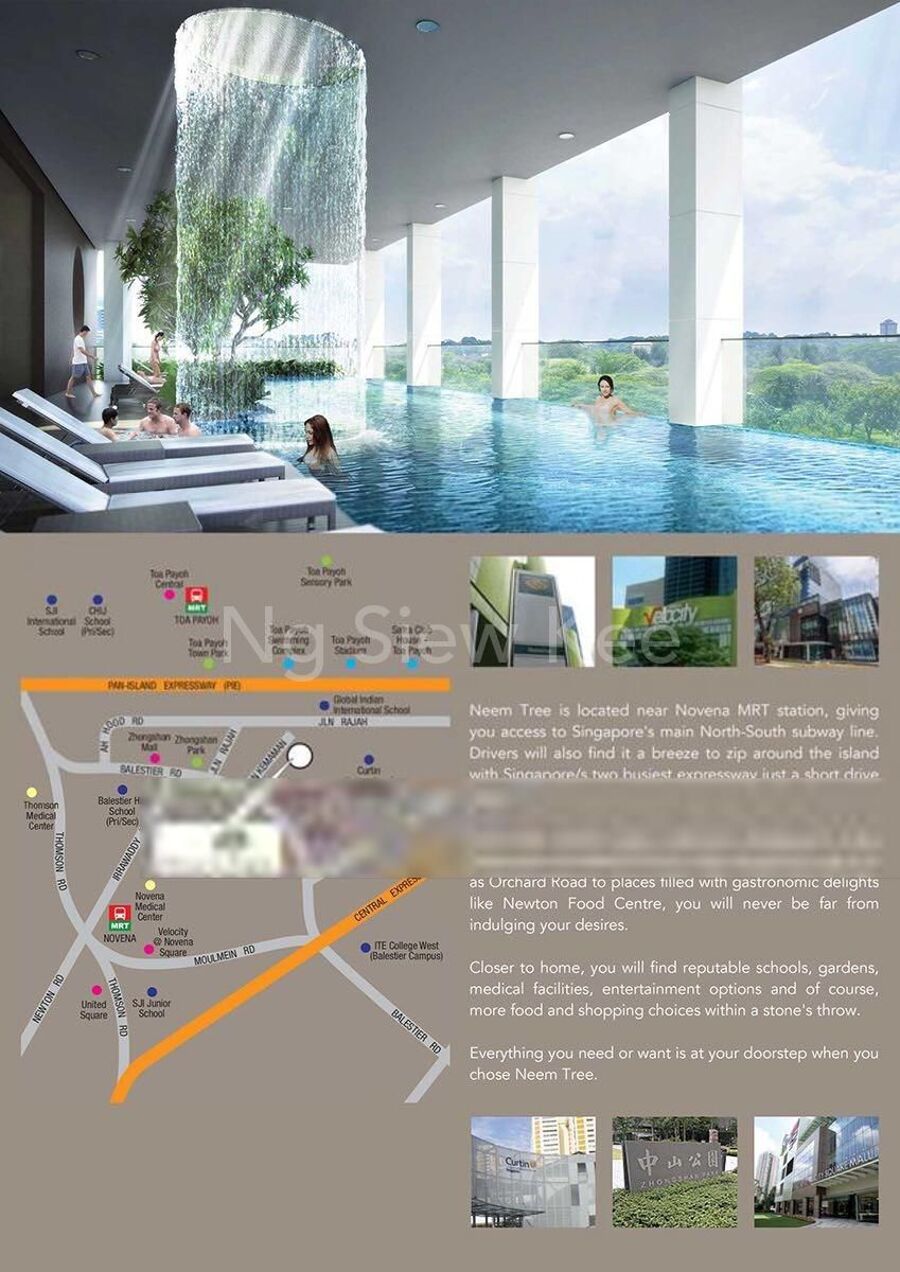 Neem Tree is in a location that is quiet yet still has most of the amenities people want and expect. Within a 5 minute walk there are a good choice of eateries, as well as grocery shopping and banks and a cinema. The local bus services – also just a 5 minutes’ walk from Neem Tree, can then take residents slightly further afield and to the nearest MRT station – Toa Payoh – which is a 15 minute walk from Neem Tre