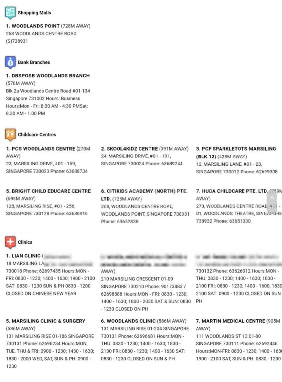 - Sheng Siong and Woodlands Point within 1km
