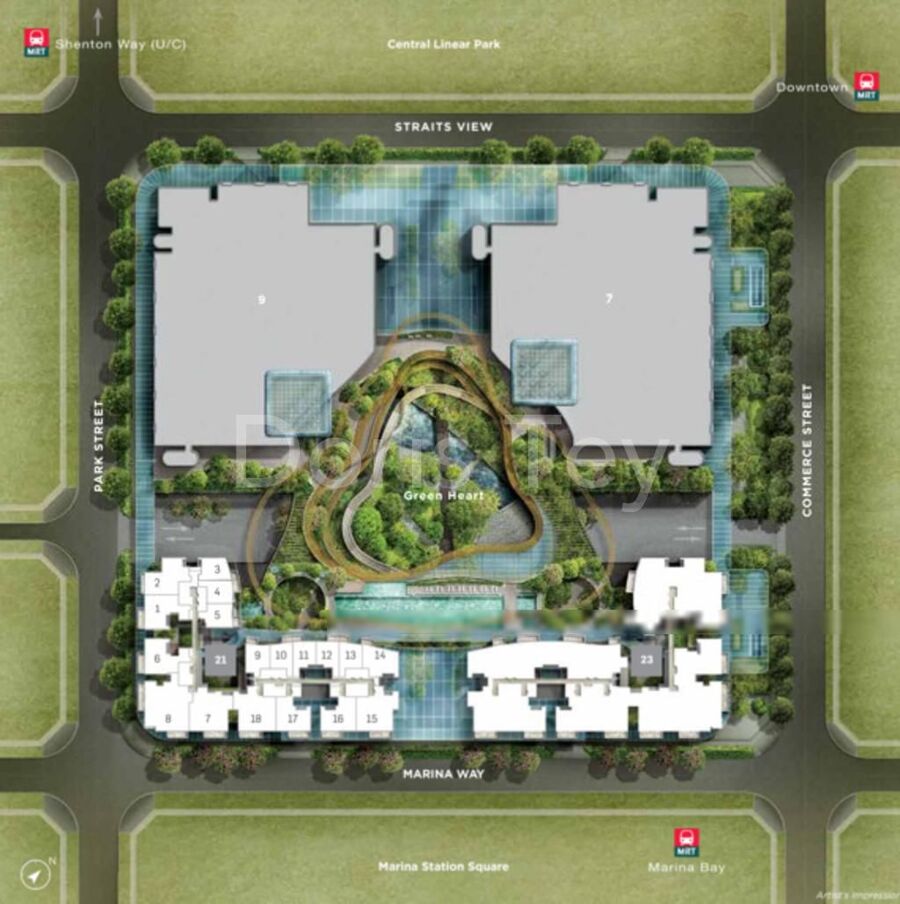 Park-like luxury living with Central Linear Park and Marina Station Square at its flanks