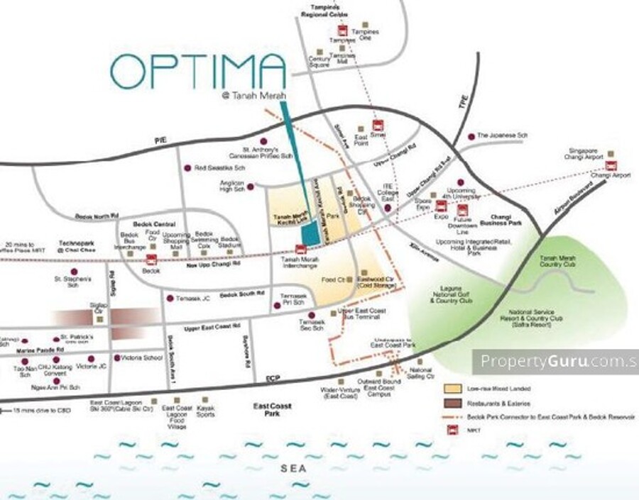 OPTIMA @ TANAH MERAH is a 99 year apartment located at 78-88 Tanah Merah Kechil Avenue in district 16 near Tanah Merah MRT, Expo MRT and Simei MRT Station. It comprises a total of 14 storeys and 297 units. It is located in the vicinity of New Upper Changi Road Market and Food Centre and MISS U CAFE. Condo facilities at Optima @ Tanah Merah It has full condo facilities which includes, 50M Infinity Edge-lap pool, Children's Fun Pool, Water Bubblers, Spa Oasis, Lounge Deck, Suntan Deck, Multi-Purpose Deck, Water Feature, Tennis Court, Multi-Purpose Clubhouse, Function room, Steam Bath, Elevated Gym, BBQ Pavilion, Children's Playground, Fitness corner, Jogging Track, Car Park, 24-Hour Security. Condo Amenities near optima @ Tanah Merah OPTIMA @ TANAH MERAH is located within close proximity to a host of amenities which are readily available such as, Cafes, Supermarkets and Bakeries. There are schools located in the vicinity such as, Bedok View Secondary School, Bedok South Secondary School, and Anglican High School.