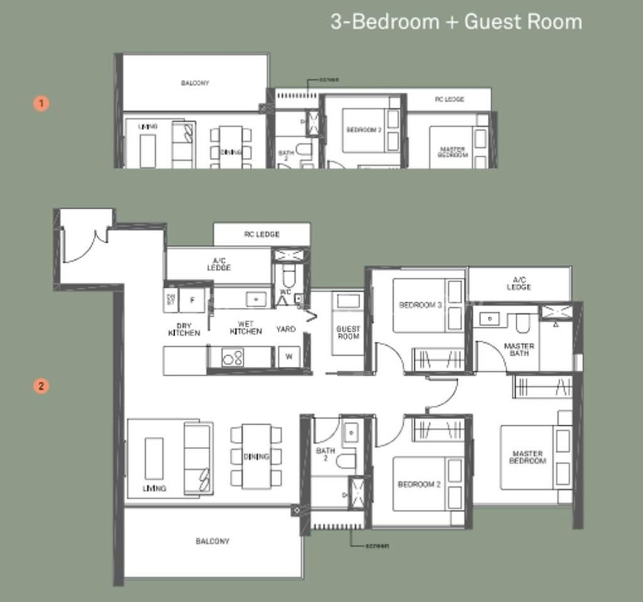* 3BR Guest (1109sqft-1346sqft) $1.4M