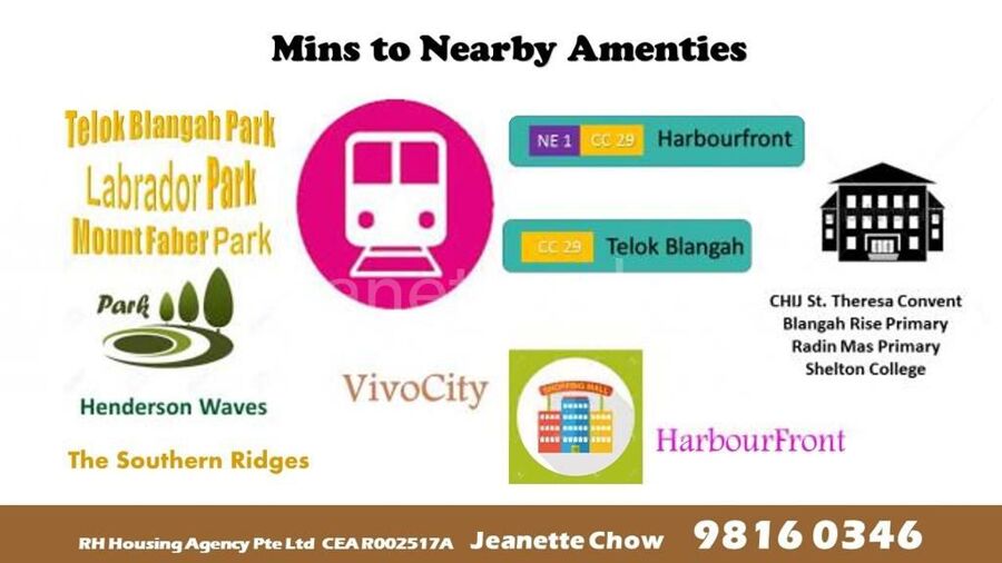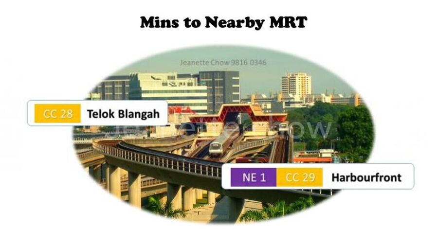 And MRTs - CC28 Telok Blangah , CC29 / NE1 Habourfront ; VivoCity, HabourFront Mall within reach . Shops & Eateries Telok Blangah Food Centre , NTUC fairprice , Safra Mount Faber within vicinity . Mins to Popular Galleries , Cafe,Bars....at Lock Road / Malan Road.....