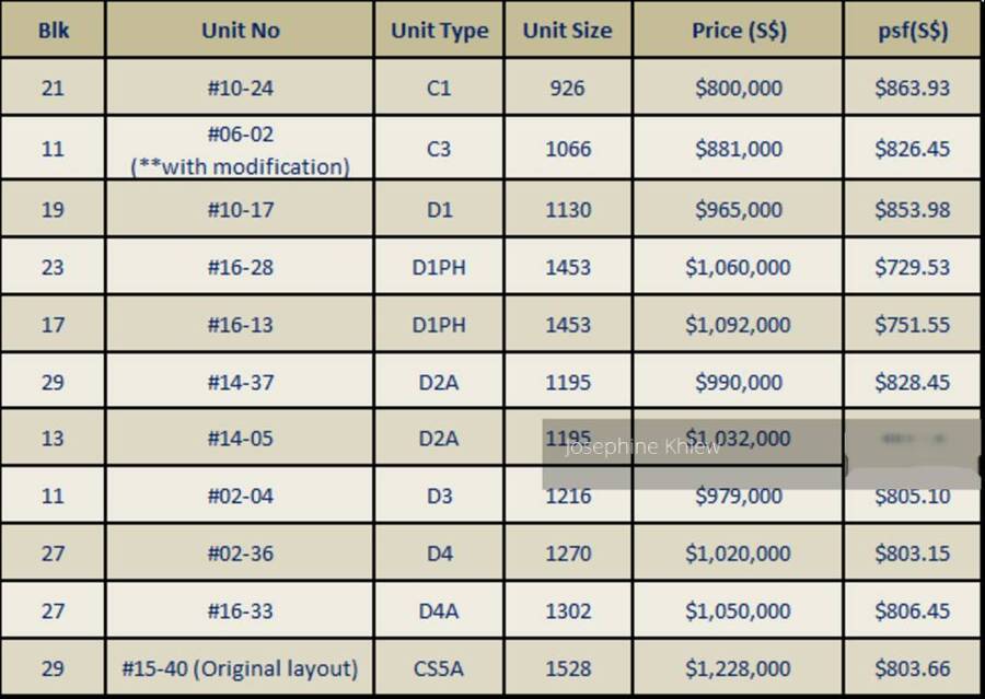 Blk 11 #06-02 (**with modification) Type C3 1,066sqft $881,000 ($826.45PSF)