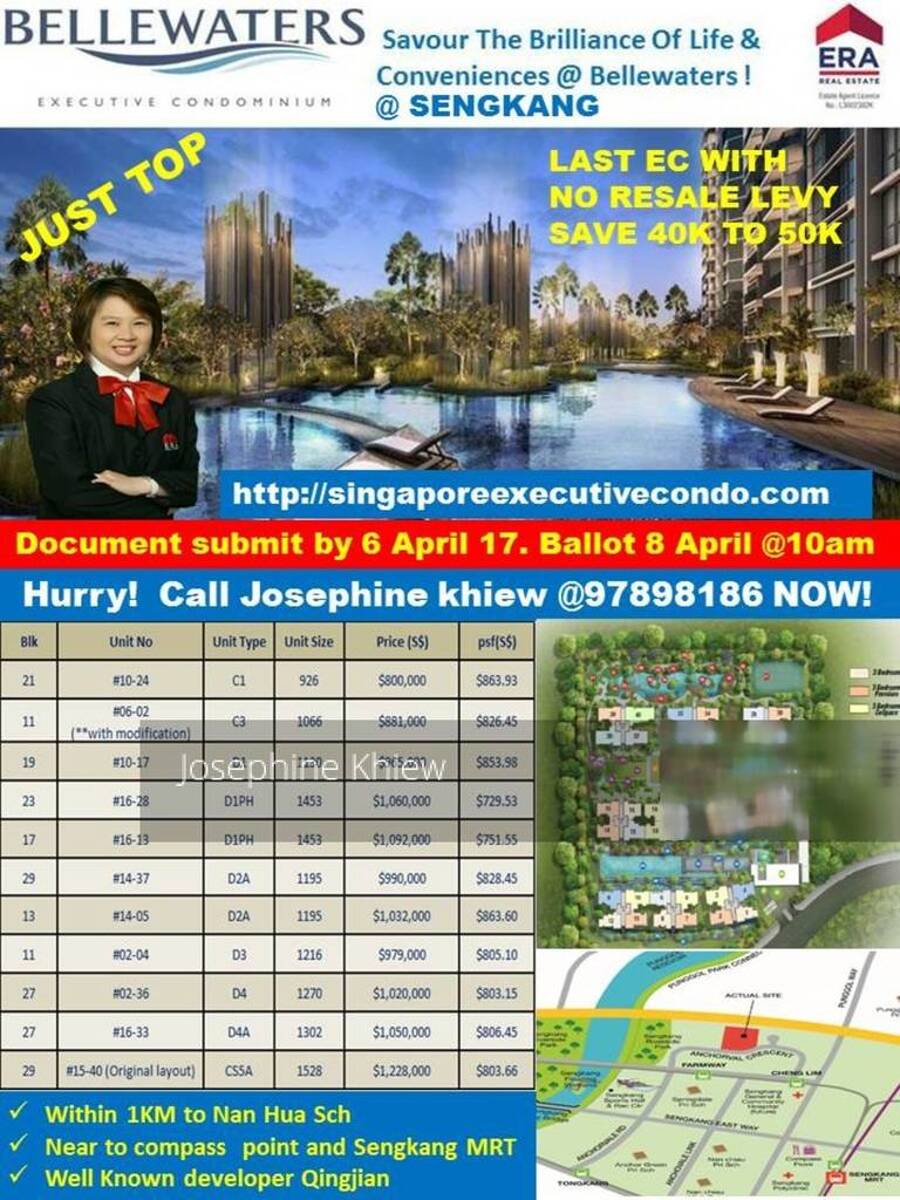Please call Josephine Khiew ERA ***** for units released and prices and booking procedures.