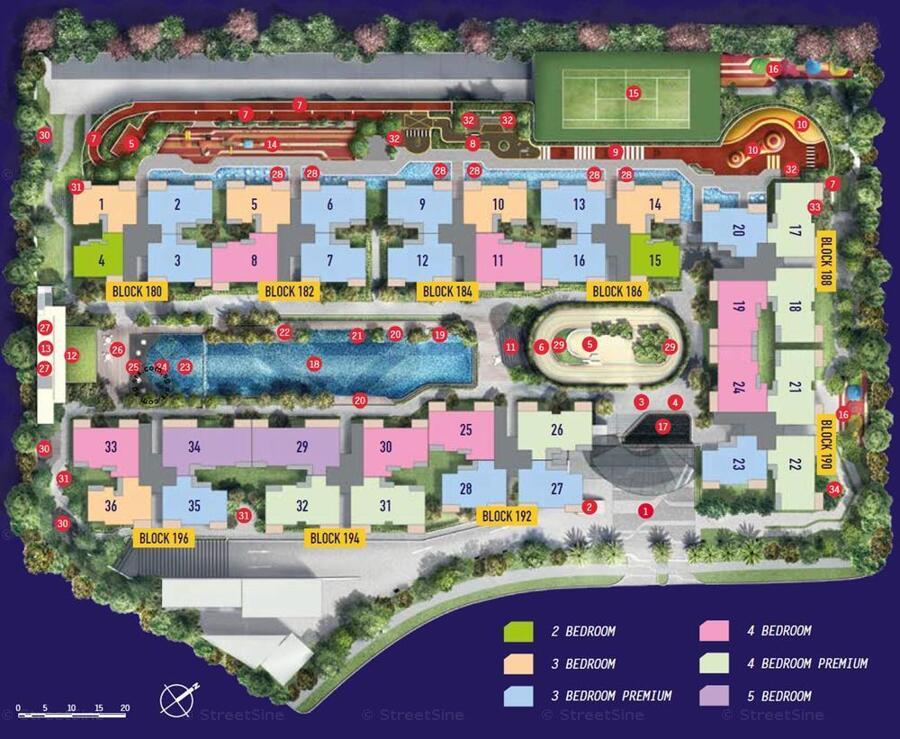 - 480 units spread across 9 blocks, 14 storeys!