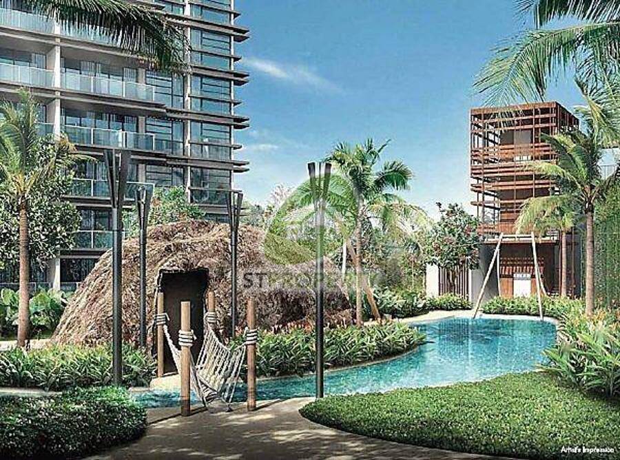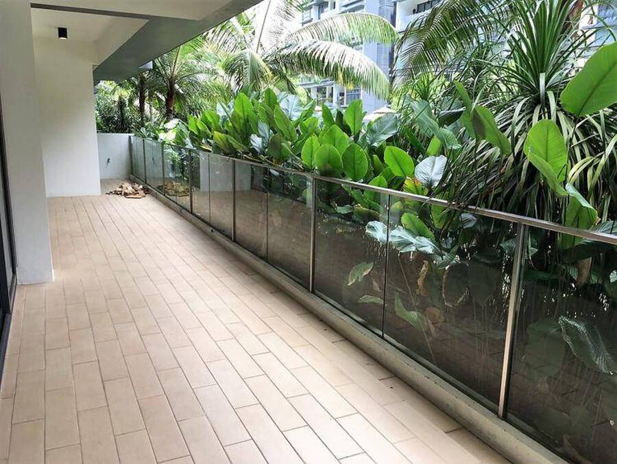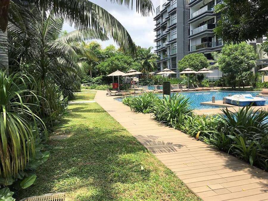 direct pool access. Efficient layout, N-S orientation, no west sun. Full resort-style facilities (3 large pools, bbq, tennis, gym, basketball, playground), lots greenery. Walk to Japanese school.