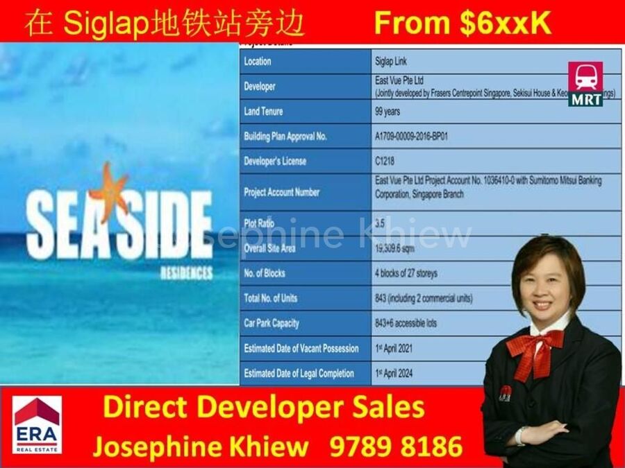 Sea View! SEASIDE RESIDENCES - New launch by Frasers Centrepoint, next to Siglap MRT!