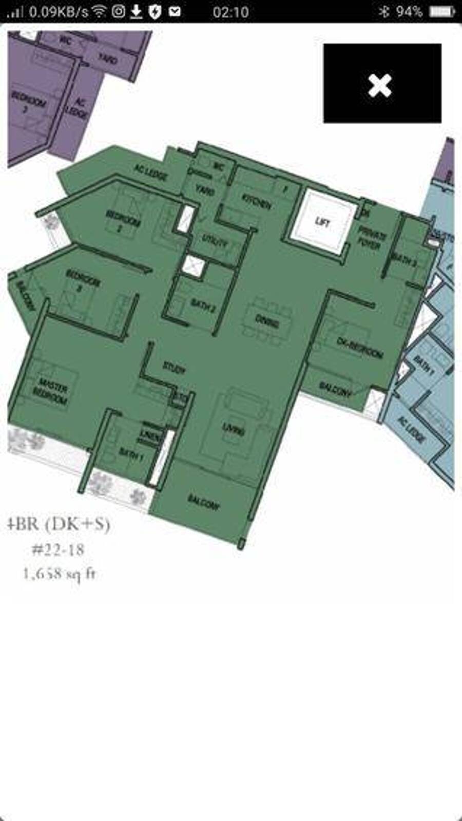 Area: Balcony, Maidsroom
