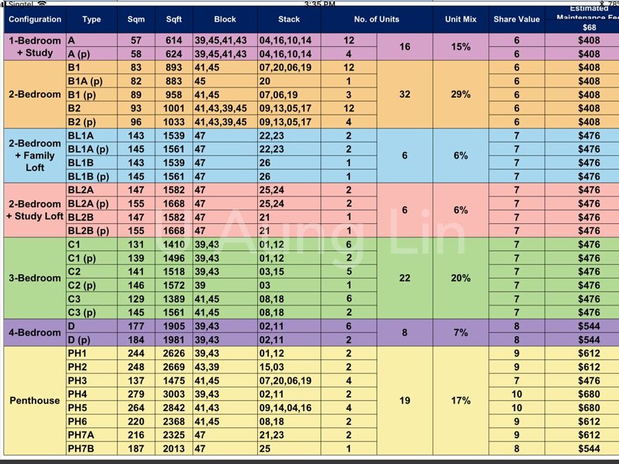 Unit Mix: 1br, 2br, 3br, 4br & PH