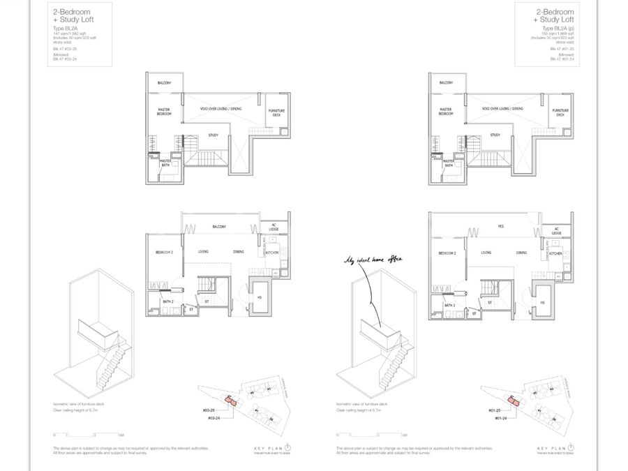 Units come with either a furniture deck (for ground floor units & 2BR + Study Loft units) or a potential storage space (for typical units)