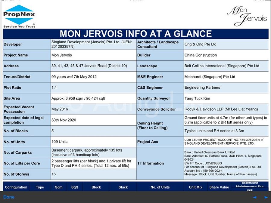 Mon Jervois is a 109-unit development located along Jervois Road near Prince Charles Crescent.