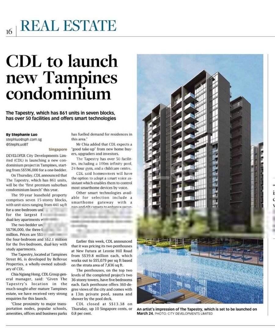 A prestige luxury condo in the heart of Tampines by CDL .